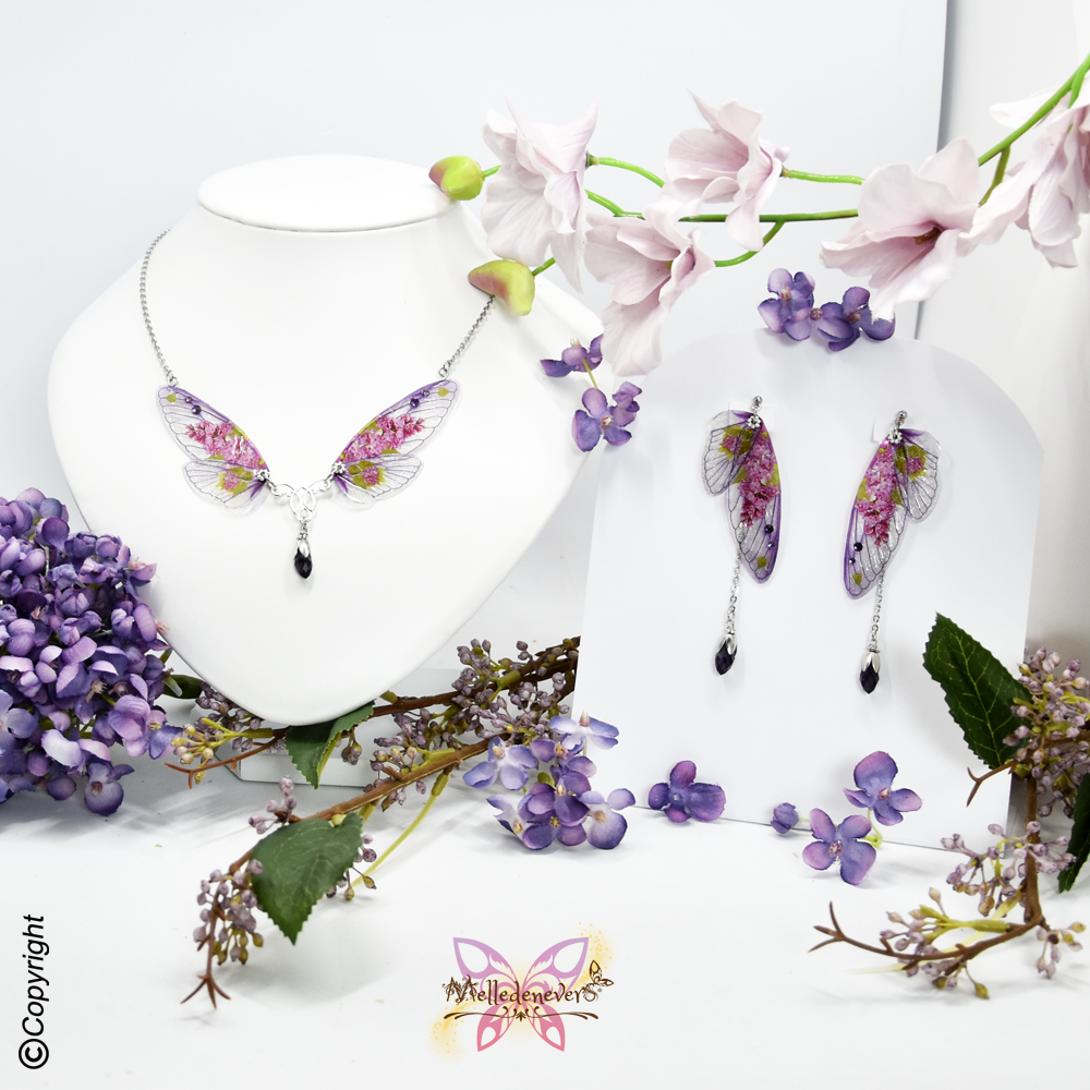 Je me suis inspirée du monde des Fées et de la Nature pour créer ce bijou aux ailes de Fée ornées de cristal.