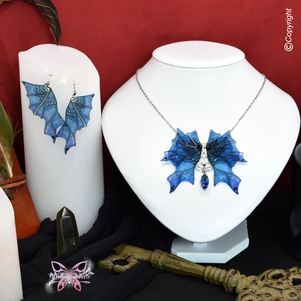 Je me suis inspirée du monde de la nature et des Dragons pour créer ce bijou aux ailes de Dragons ornées de cristal.