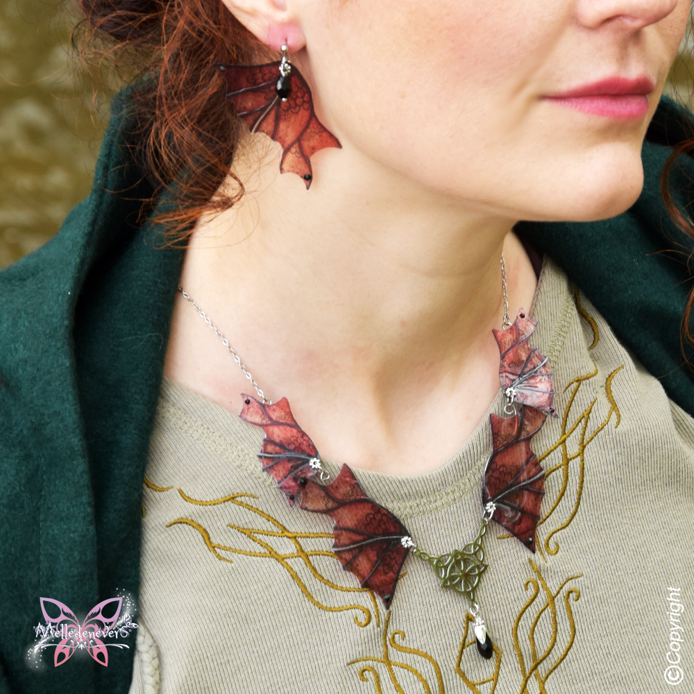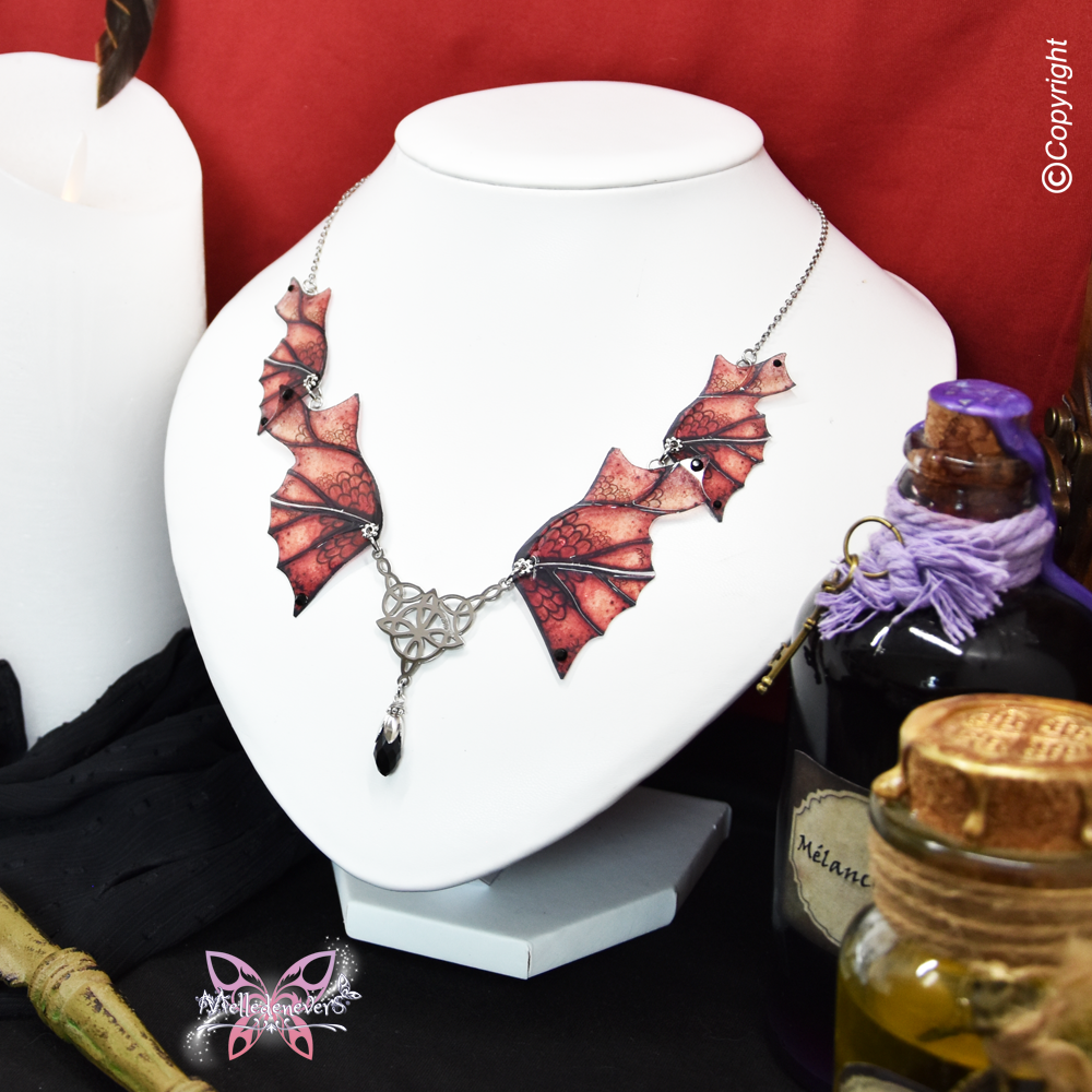 Je me suis inspirée du monde de la nature et des Dragons pour créer ce bijou aux ailes de Dragons ornées de cristal.