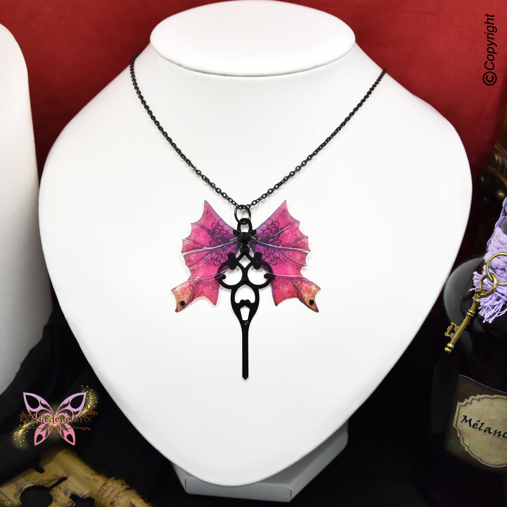 Je me suis inspirée du monde de la nature et des Dragons pour créer ce bijou aux ailes de Dragons ornées de cristal.