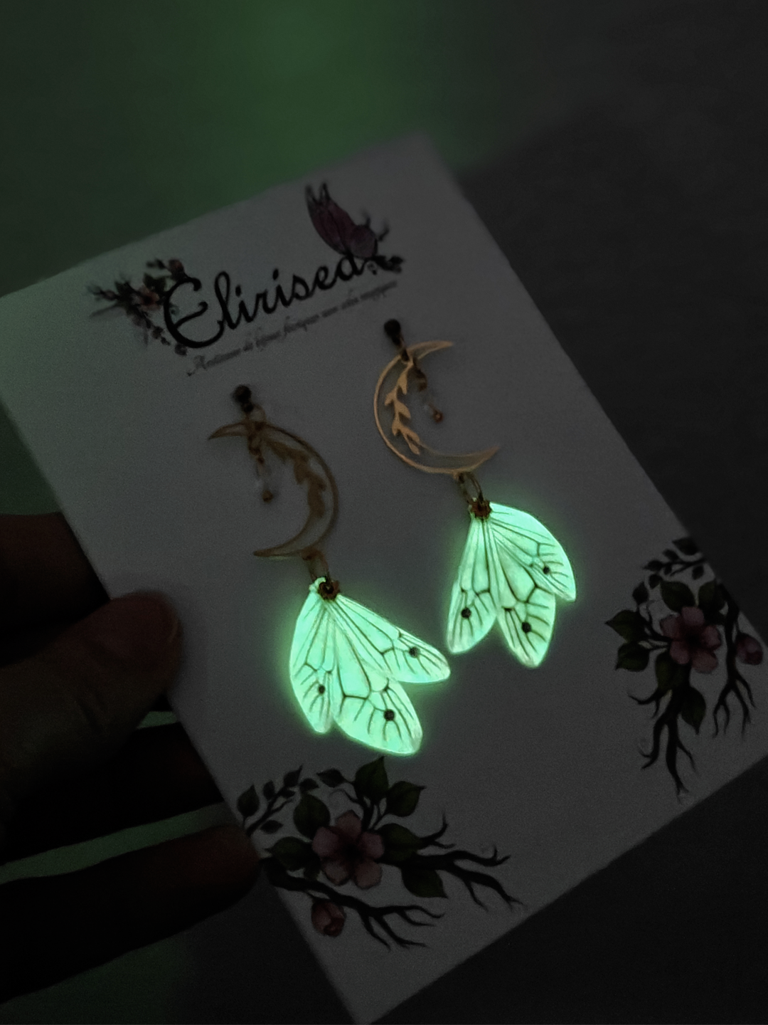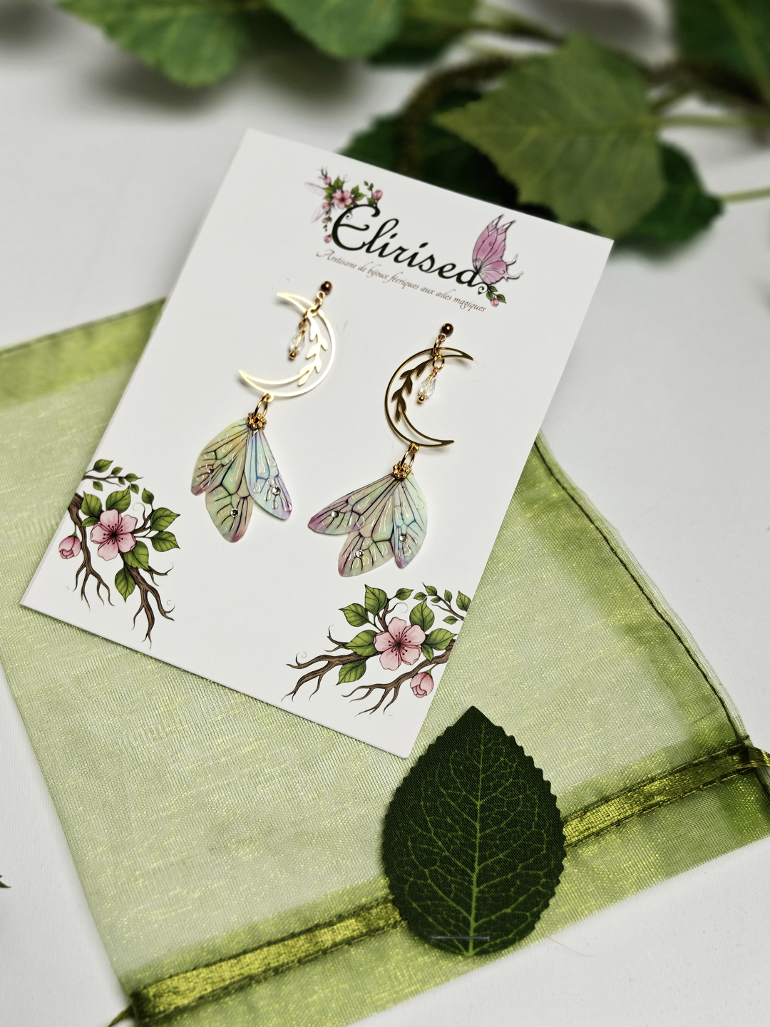 Boucles d'oreilles aux ailes de fée irisées & lumineuses