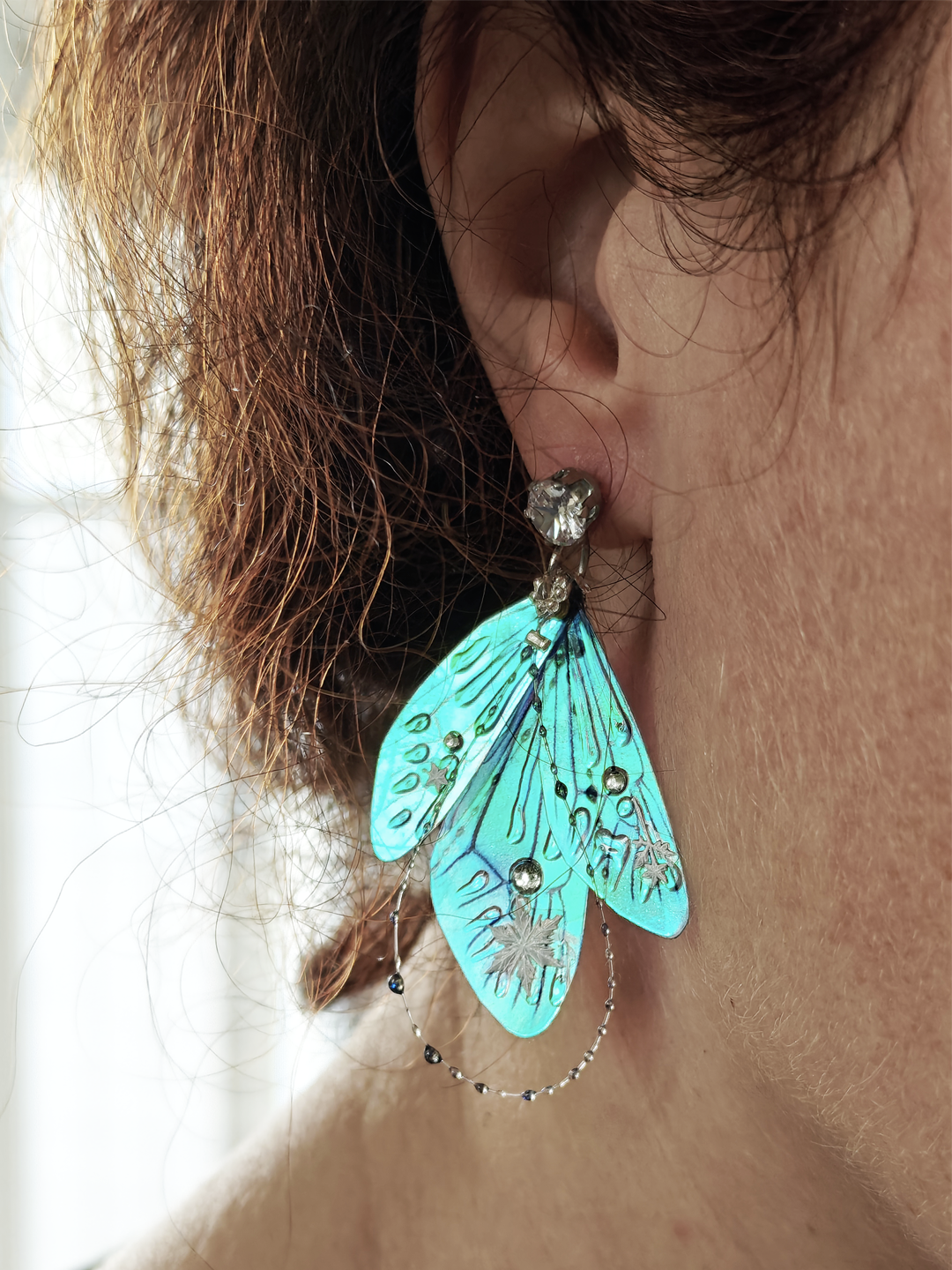 Paire de boucles d'oreilles aux ailes de fée irisées