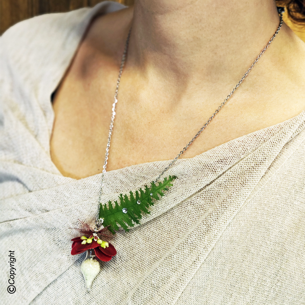 Pour les âmes amoureuses de décembre ce bijou est une étreinte de rouge et de verdure de fougère.