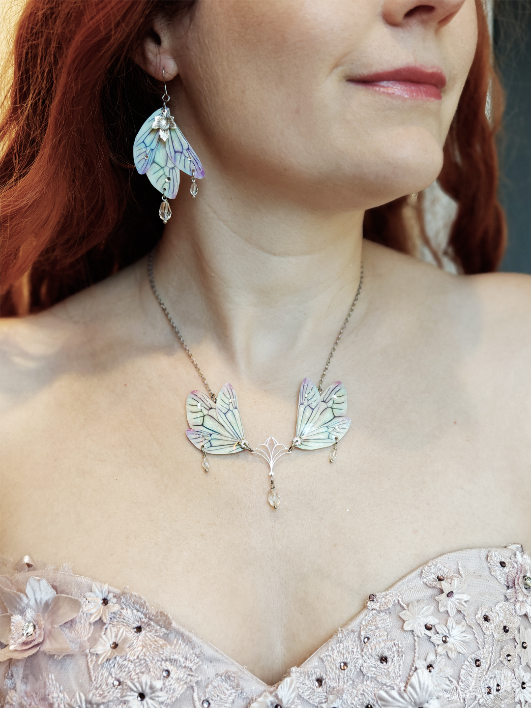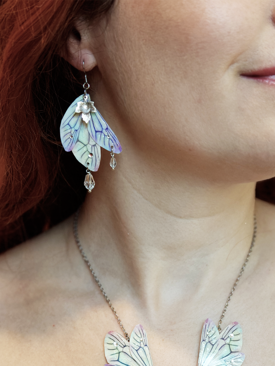 Boucles d'oreilles aux ailes de fée irisées & lumineuses