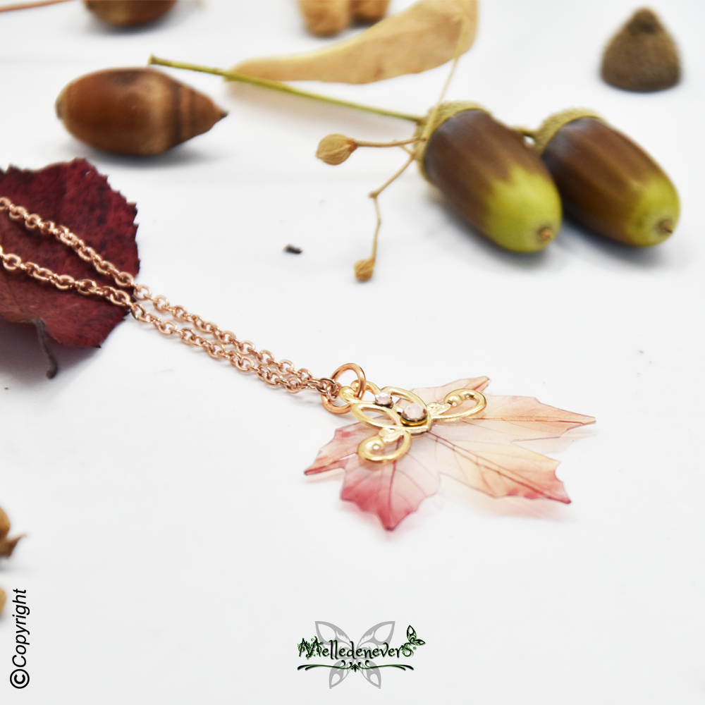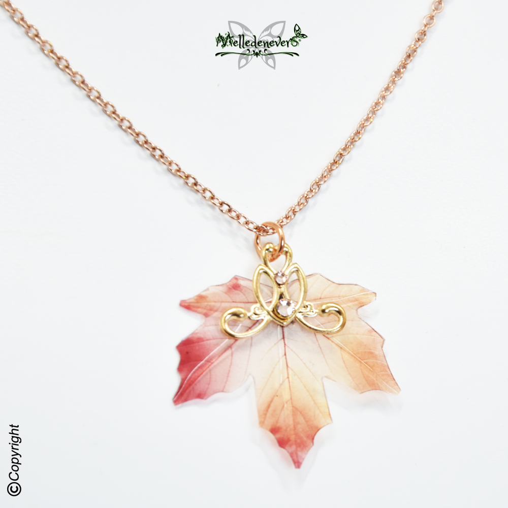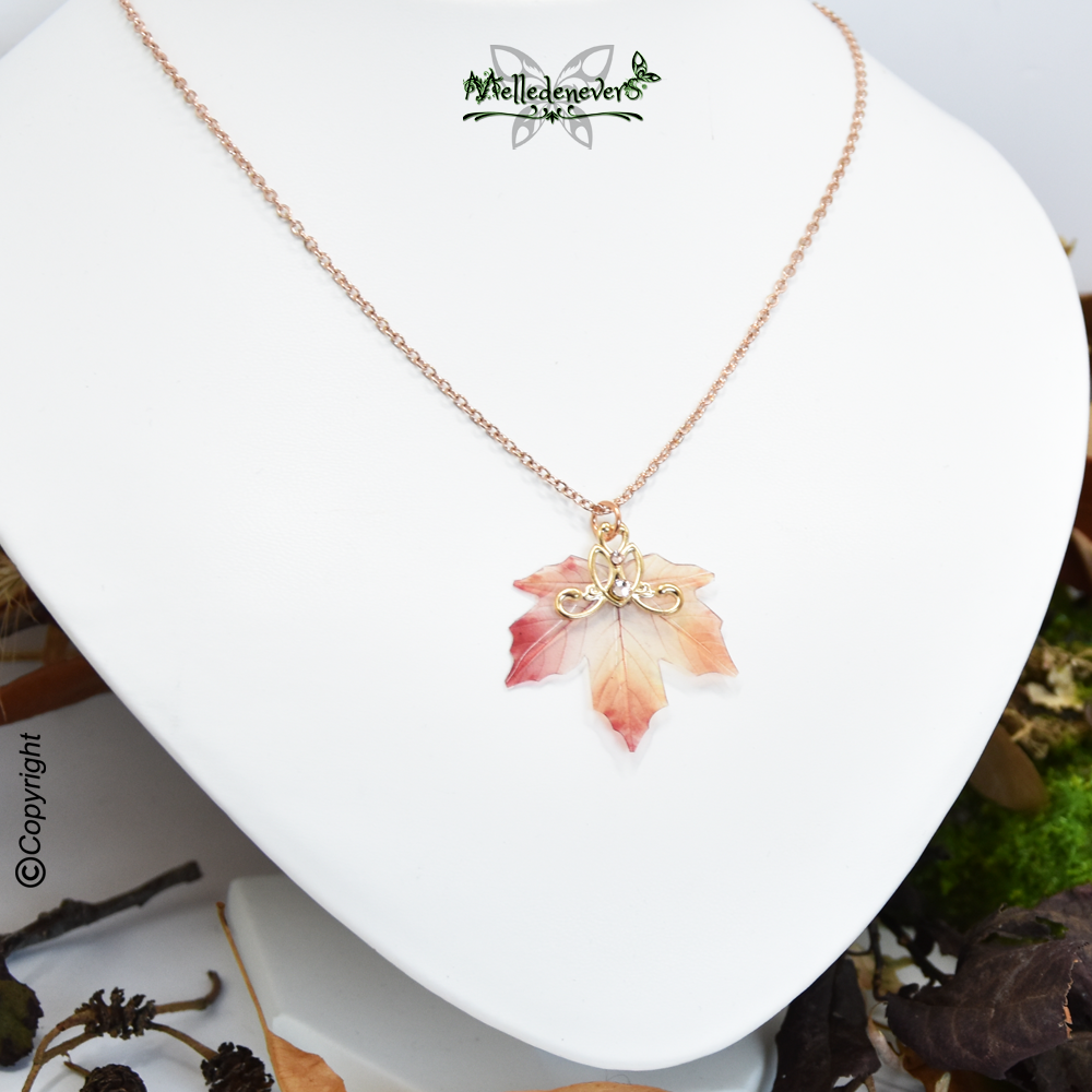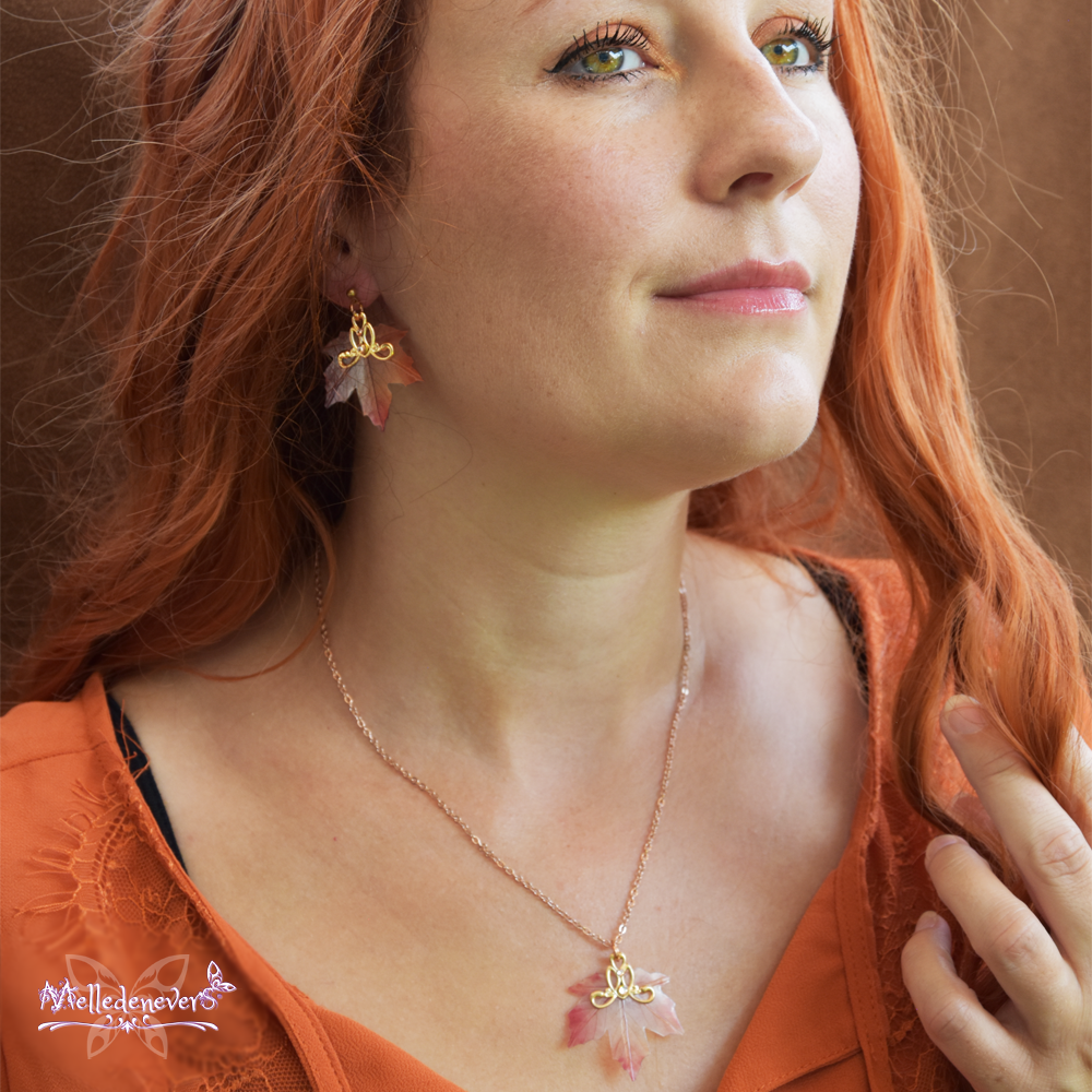 Je me suis inspirée du monde féerique et de l'automne pour créer ce bijou aux feuilles d'automne aux doux dégradés.