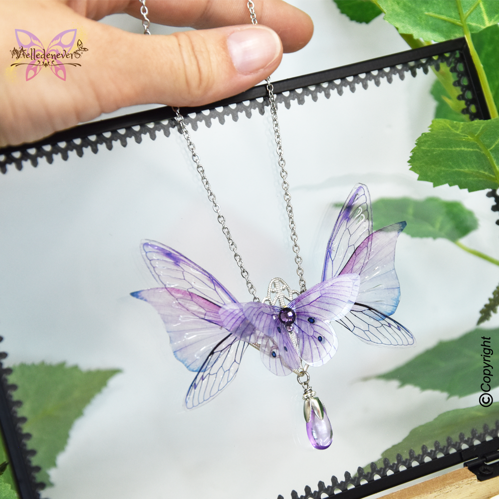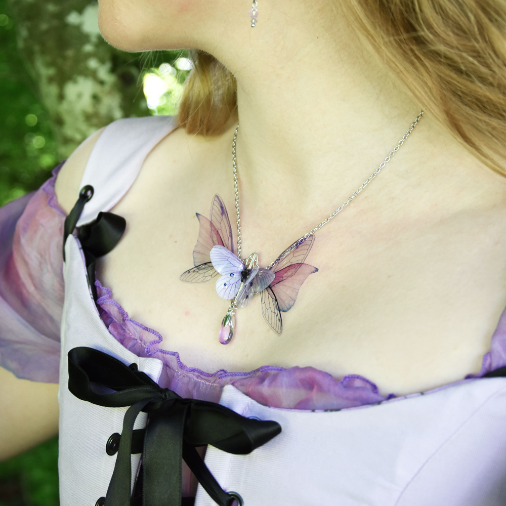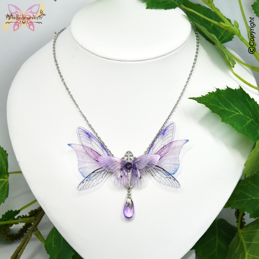 Je me suis inspirée du monde féerique des Sylphides pour créer ce bijou aux ailes de Fée ornées de cristal.